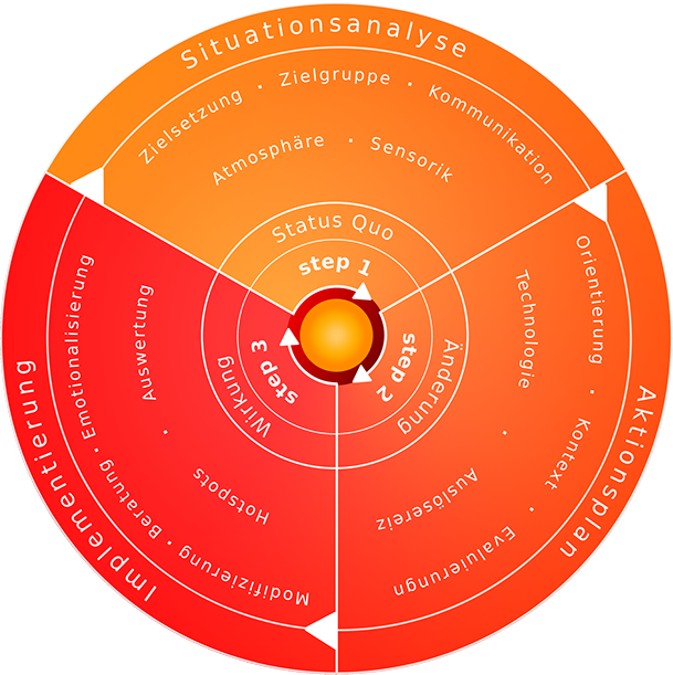 (Retail-)Theater erzählt Geschichten, überrascht, bewegt, ist authentisch und niemals langweilig. Ausgehend von einem skizzenhaften Plot, werden über verschiedene Stufen die grundlegenden Polaritäten festgelegt, der Spannungsbogen und die einzelnen Qualitäten definiert und daraus die finale Story entwickelt. So entsteht am Ende ein Bühnenbild, das die grundlegenden Eigenschaften in sich vereinigt und diese ganzheitlich transportiert.